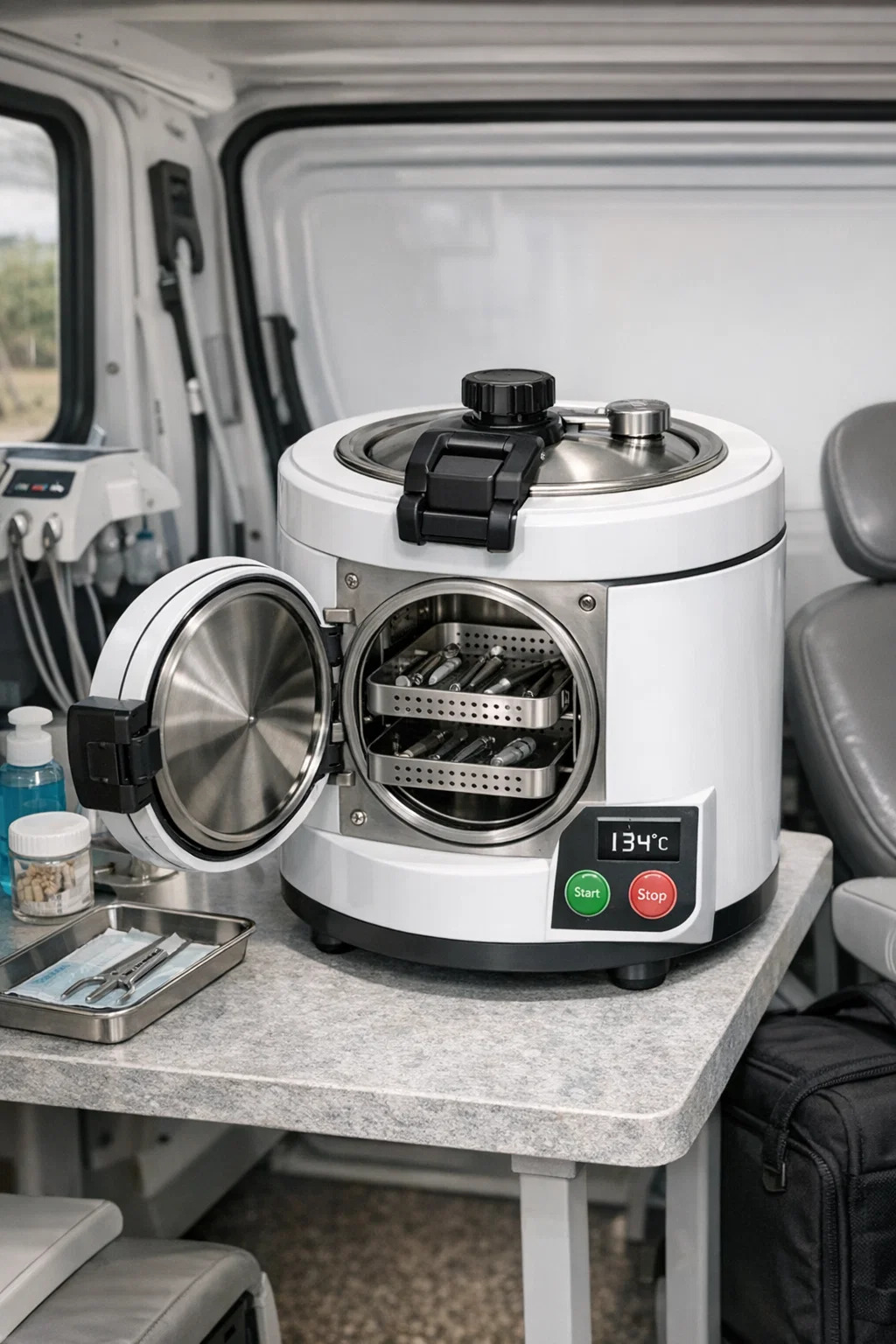 Flexibilidad: Para pequeñas clínicas privadas o entornos con espacio de tratamiento muy limitado, el autoclave dental portátil resuelve perfectamente el problema de espacio insuficiente.