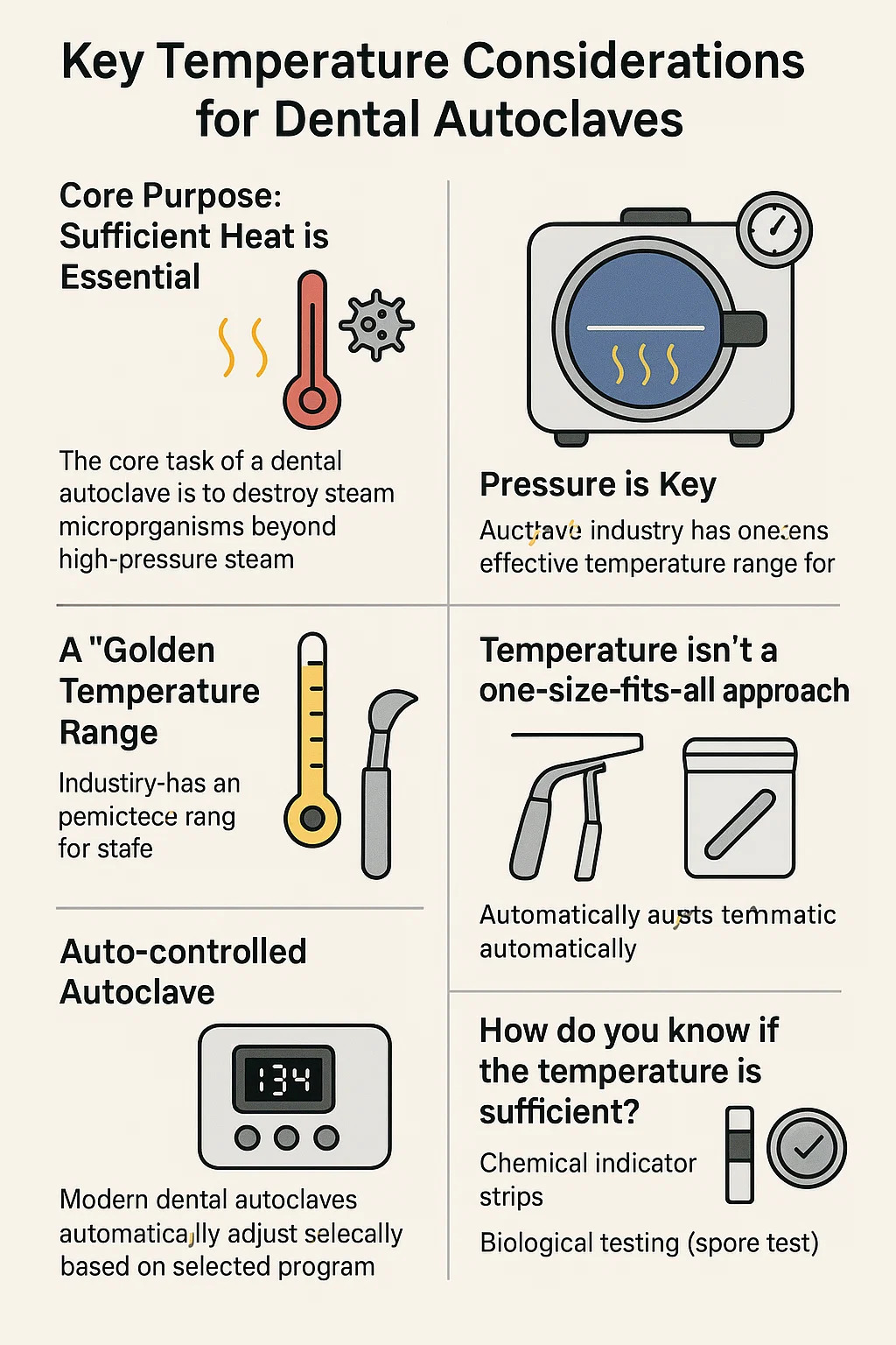 A través de una práctica a largo plazo, la industria dental ha identificado un rango de temperatura efectivo y universalmente aceptado para la esterilización.